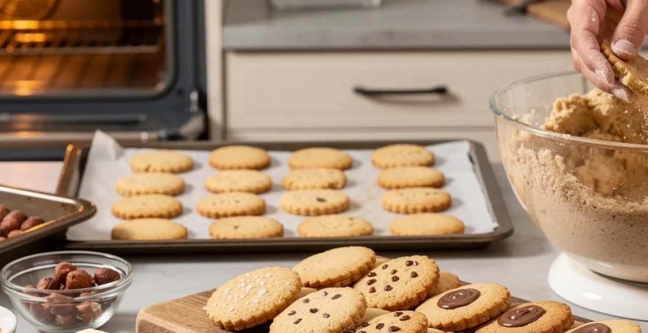 Pour un croustillant durable, notamment si vous prévoyez de conserver vos sablés à la noisette plusieurs jours, la technique de la double cuisson est particulièrement efficace. Elle consiste à cuire les biscuits une première fois à 160-170°C jusqu’à ce qu’ils soient juste dorés, puis à les laisser refroidir légèrement avant de les repasser au four à plus basse température, autour de 120-130°C, pendant 8 à 10 minutes. Cette seconde phase agit comme un “séchage” à cœur, un peu à la manière des biscottes ou des croquants.