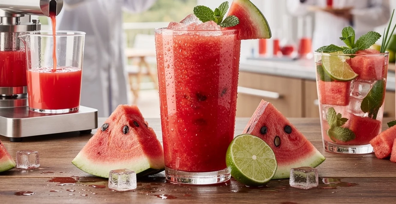 Parmi les mariages aromatiques les plus réussis, l’association du jus de pastèque, de la menthe fraîche et du citron vert s’impose comme un classique. La douceur aqueuse de la pastèque crée un “tapis de fond” idéal pour la vivacité acide du citron vert et la fraîcheur mentholée. Cette combinaison équilibre la sucrosité naturelle du jus sans nécessiter l’ajout de quantités importantes de sucre ou de sirops. On obtient ainsi une boisson désaltérante, à la fois légère et structurée, parfaitement adaptée aux périodes chaudes et aux apéritifs d’été.
