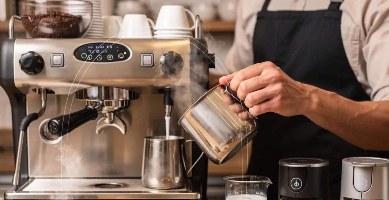 Ces systèmes professionnels permettent un réglage précis de la puissance vapeur selon le type de lait et la texture souhaitée.