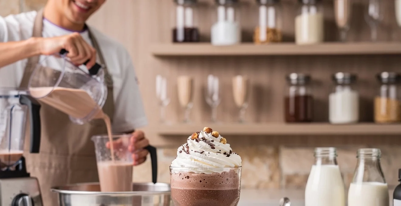 La densité d’un milkshake au chocolat se mesure principalement à la résistance qu’il oppose à la paille ou à la cuillère. Souhaitez-vous un milkshake épais, presque à manger à la cuillère, ou plutôt fluide, façon boisson glacée à siroter rapidement ? Le paramètre clé reste le ratio glace/liquide. En règle générale, un ratio de 2:1 (deux parts de glace pour une part de lait) produit un milkshake dense et crémeux, idéal pour une présentation gourmande avec chantilly et toppings. Un ratio de 1,5:1 donnera une texture plus légère et plus facile à boire, adaptée aux enfants ou à un service en grande quantité.